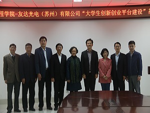 与苏州友达光电有限公司的“大学生创新创业平台建设”基金签约仪式在机械楼三楼会议室举行。友达光电有限公司总经理郭振明、友达光电有限公司S01厂厂长李和荣、友达光电有限公司人力处经理陈丽华、黑料不打烊