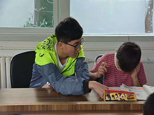 新西门,乘车去往饮虎池社区,然后开始一上午的志愿活动。来到饮虎池社区,志愿者们先简单的整理了辅导站活动室内的桌椅,为孩子们营造了良好的学习环境。在孩子陆续到达辅导站之后,便开始了一上午的辅导工作。在辅导过程中孩子们有不懂的地方就纷纷向志愿者哥哥姐姐们请教,志愿者们也非常耐心地为孩子们讲解。志愿者们还给孩子们讲述了他们的大学生活,给孩子们树立起榜样,孩子们对此也很感兴趣,整个辅导站洋溢着欢声笑语。