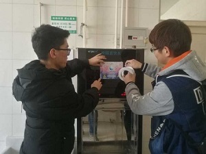 12月22日中午,志愿者们集合完毕,分成两组。在一番认真准备过后,他们分别赶往第30号和第33号学生公寓。他们首先确认可能存在安全隐患的地面,并在其周围张贴标语。在这次爱心活动中,志愿者们负责粘贴了先前悉心准备的宣传标语版,标语中透露着对同学们的关爱。因饮水机溅水使路面结冰,所以志愿者们在饮水机上也张贴了标语,并对饮水机进行了简要的维修和处理。而所随的记者团工作人员也将这一温馨的画面用相机记录了下来,让我们共同留住了这一美好的瞬间。