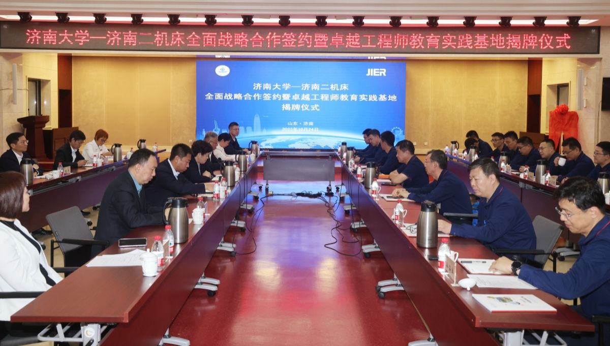 10月24日,我校与济南二机床集团有限公司(以下简称济南二机床集团)全面战略合作签约暨卓越工程师实践基地揭牌仪式在济南二机床集团举行,学校党委书记刘春华,党委常委、副校长黄加栋,济南二机床集团党委书记、董事长张世顺,济南二机床集团党委副书记、董事任立伟,党委委员、副总经理、我校05届校友冯国明等出席仪式。党委(校长)办公室、人力资源处、科技处、研究生院、合作发展处、黑料不打烊