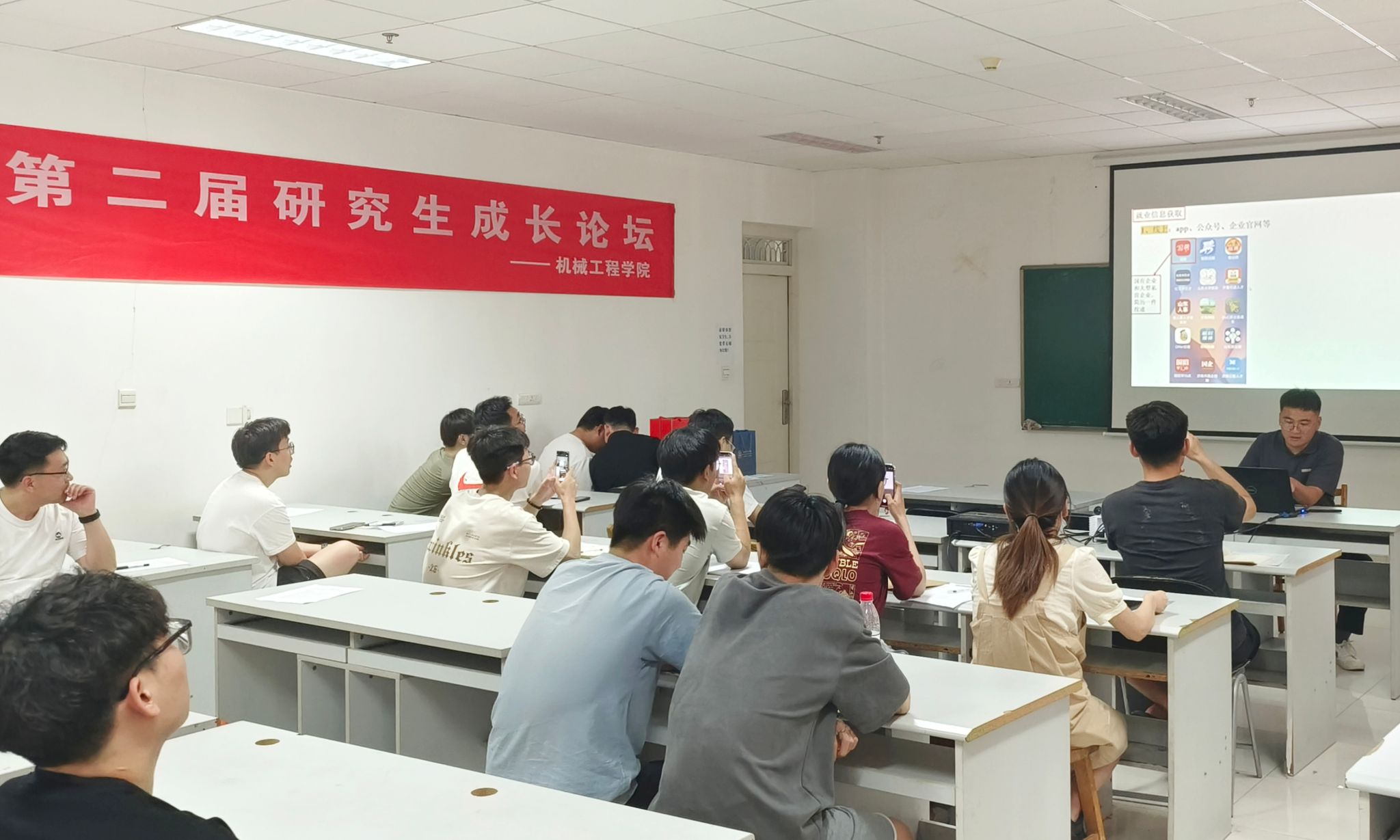 于6月19日在机械楼A207举办“第二届研究生成长论坛”。论坛邀请黑料不打烊21级成功考博、考编、就业等六位优秀毕业生进行经验分享,部分在校研究生积极参会并与主讲人进行了交流互动,本次论坛由研究生辅导员张畔全主持。