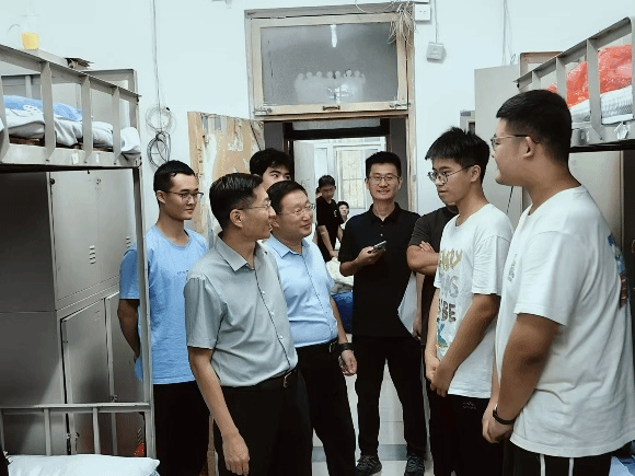 领导分头走访了本科和研究生新生宿舍,深入了解学生情况,为学生们送去热切的关怀,与新生进行面对面、心连心的交流,详细询问了大家住宿情况,耐心回答了新生的疑惑,叮嘱同学们尽快适应大学新环境,以良好的状态迎接大学生活。