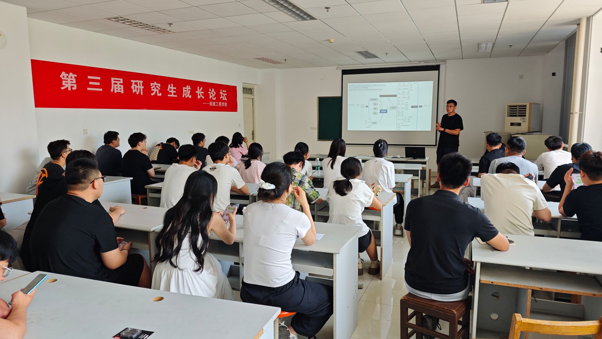 于6月17日在机械楼A207举办“第三届研究生成长论坛”。此次论坛邀请我院22级在申博、专利申报、考编、就业等领域取得突出成绩的六位优秀毕业生作为主讲人进行经验分享,部分在校研究生积极参会并与主讲人进行了交流互动。