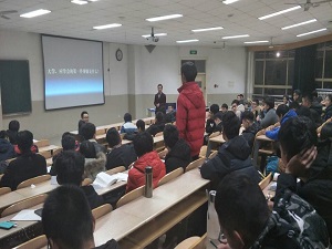 晚上7点,杜老师从现实生活状况出发,围绕科技创新实例、课题、创新思维和方法的培养以及各种创新型比赛展开讲解。科创的本质是解决问题,杜老师通过无人机,小黄车,大蒜收割机等实例来增强同学们对科创产品的了解,同时吸引了他们的兴趣。对于创新思维的培养,杜老师鼓励同学们学好专业知识,提升动手实践和捕捉灵感的能力,最重要的是要有发现新颖点的眼睛。随后,马传震学长结合自己的亲身经历,与同学们分享了他对大学生活关于科创感想和看法,从时间管理,学习目标以及协调学习生活的方式讲解,马传震学长用幽默风趣且贴切生活的话语引起了同学们的强烈认同感。最后,科协干事以“走出舒适区,走向学习域”的鼓励词结束了本次活动。
