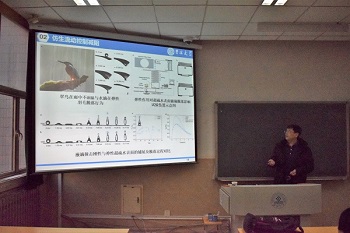 张成春教授以“仿生流动控制”为题,先后针对仿生流动的三个方向——机械仿生,材料仿生,军事仿生及其在流体力学研究领域的内涵进行阐述。张教授通过翠鸟快速入水仿生,龙虱水下推进仿生等具体事例,讲解其在仿生减阻,仿生减噪等多个方面的仿生应用;随后通过分享自己在低噪声飞行的鸮类研究经历,提出如何对研究中出现的问题和控制变量的方法进行分析;最后介绍了液固多相流近壁区流场控制与壁面耐冲蚀磨损的相关知识,鼓励大家通过动物世界发现更多仿生问题。曹院长总结发言,认为教授丰富的实例与形象的阐述为大家带来一场高质量的学术讲座,希望大家在平常的学习研究中深入地钻研与解决问题,培养积极进取,不断探究的学术精神。