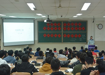 17级辅导员杨金鑫老师上台发言,杨老师以“机”不可失,不“械”奋斗为切入点,分析了社会对高精尖人才需求的趋势并表示考研意味着高起点、深学习、好前景、广资源,应该给自己迈上生涯新台阶的机会;同时考研除了收获录取通知书,更是重要磨练过程,抗压力、自控力与学习力提高的同时,获得了未来的奋斗力。随后王芳隆学长第一个上台,他用诙谐的语言为大家讲解考研高校及考研培训班等方面的选择经验,赢得观众阵阵掌声。袁鑫学姐分享了考研资料和考研网站的选择以及高效合理的考研流程。同学们认真做笔记,纷纷点头表示赞成。最后荆传智学长讲述了考研的亲身经历,其中的种种艰辛让在场同学为之动容,同时也为大家的大学生涯规划提供了宝贵的建议。在学长学姐的讲述过程中,同学们认真倾听,积极参与互动,大胆提问。学长学姐们耐心解答,随着大家发自肺腑的掌声感谢,本次讲座落下帷幕。