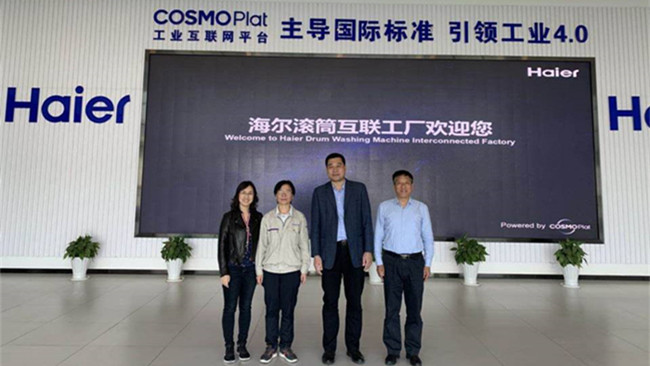 曹树坤院长和郝军副书记一行两人参观了青岛国际经济合作区(中德生态园)的海尔滚筒互联工厂和海尔智能研究院,并与青岛国际经济合作区管理委员会徐海洁副主任,中德生态园企业服务局田维平局长针对科研合作,校企合作,校地(校企)联合培养人才等事宜进行了友好交流。