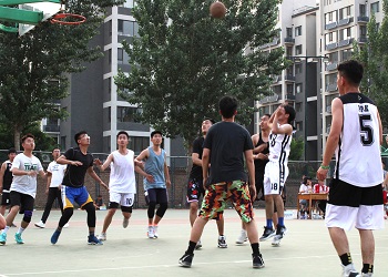 一声哨响,此次比赛正式开始,高高抛起的篮球点燃了比赛的热火。双方队员表现出强烈的取胜欲望,在开场时便频频控球、抢断、扣篮,出色的配合以及迅速的回防,动作帅气利落。比赛进入了白热化的阶段,双方队员不甘示弱,发起了更加猛烈的攻击。赛场上紧张的篮球比拼展现着大学生应有的竞技风采。场下气氛也十分活跃,比赛甚是精彩!赛后,双方球员践行着“友谊第一,比赛第二”的宗旨,互相勉励。天色渐晚,本次篮球友谊赛也正式步入尾声,虽各年级不分高下,但比赛中的竞争交流对于各队员和在场观众都是难忘的。