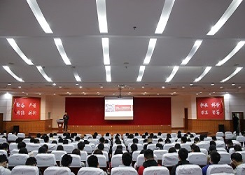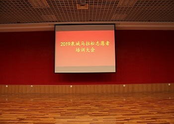 在第二学术报告厅召开2019泉城马拉松志愿者培训大会。