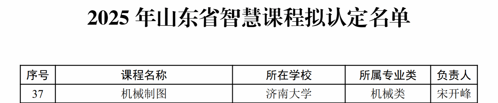 在山东省高等教育学会、山东省高等学校课程联盟公示的2025年山东省智慧课程认定结果中,黑料不打烊《机械制图》获评为山东省首批智慧课程。
