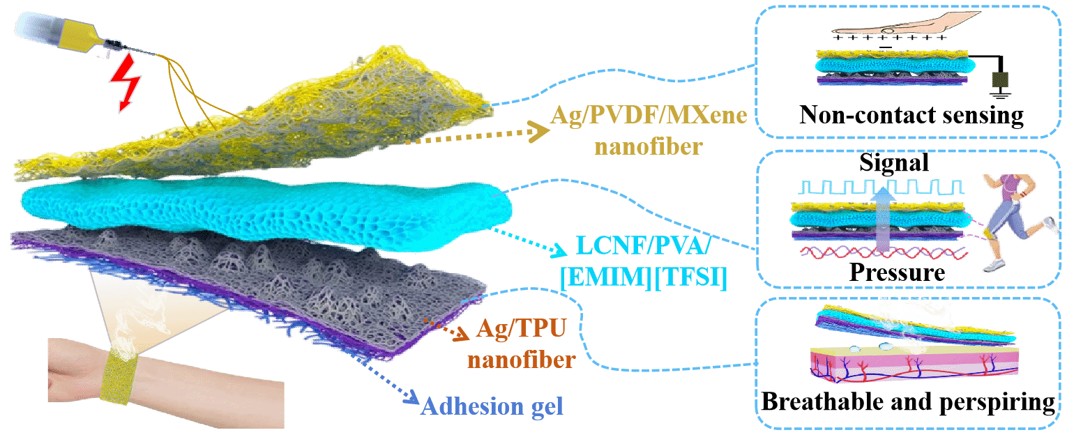 1. Biomimetic breathable nanofiber electronic skins with temperature-controlled self-adhesive and directional moisture-wicking properties for bifunctional pressure and non-contact sensing(Nano Energy,中科院一区,影响因子16.8)