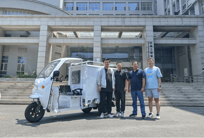 氢能团队和北京京豚科技有限公司联合开发的氢燃料电池快递三轮车在主校区进行了连续七天的性能测试。快递三轮车设计最高时速45 km/h,采用1.0 kW氢燃料电池系统,满载情况下单次氢能续航超过120 km。氢燃料电池快递三轮车采用低压合金储氢技术提供氢气,优化了充放氢系统,并且可以进行氢瓶的快速更换;动力系统采用氢燃料电池和钠离子电池的协同供电,解决了续航里程的担忧与充电安全风险问题。氢燃料电池快递三轮车在未来将大有作为,氢能交通工具也有望与其他新能源交通工具一道,构筑城乡发展的运力网络。