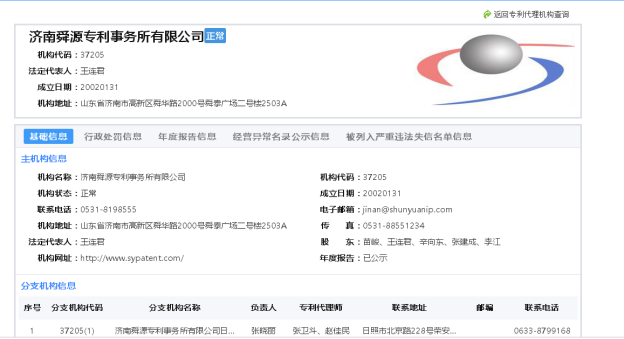 济南舜源专利事务所有限公司于2002年在原山东工业大学专利事务所基础上改制成立,总部位于山东省济南市高新区舜华路2000号舜泰广场2号楼25层,公司下设青岛、滨州、日照、潍坊和济宁分公司。